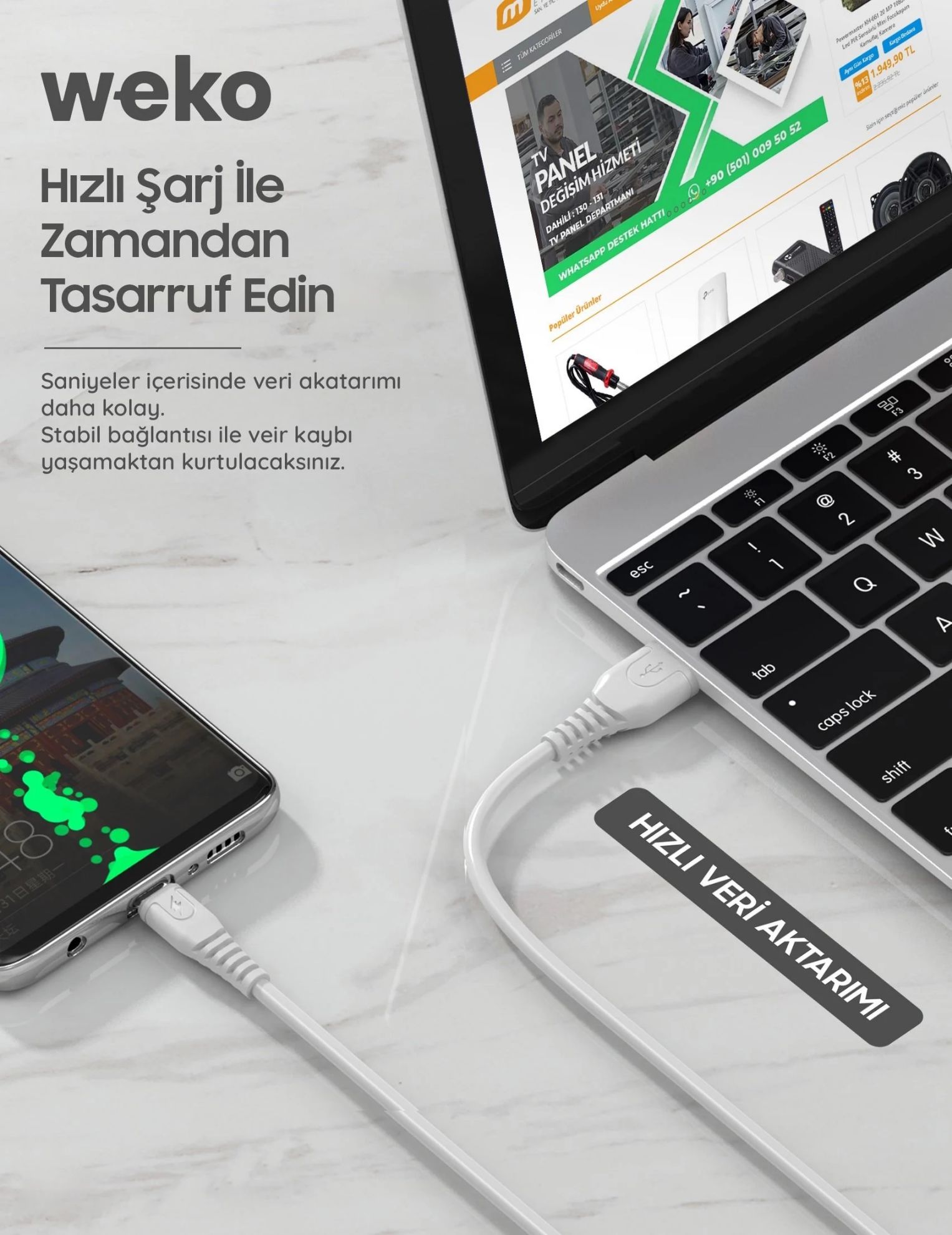 Öne Çıkan Özellikler: Hızlı Şarj Desteği: Weko WK-22018, 3 amper güç aktarımı özelliği sayesinde hızlı şarj özelliği sunar. Bu sayede mobil cihazlarınızı daha hızlı bir şekilde şarj edebilirsiniz. Uzun şarj süreleriyle vedalaşın! Yüksek Veri Aktarım Hızı: Verilerinizi hızlı ve güvenli bir şekilde aktarmanızı sağlayan bu kablo, dosyalarınızı kolayca paylaşmanıza olanak tanır. Yüksek veri aktarım hızlarıyla zaman kaybetmeyin. Geniş Çeşitlilik: Weko Şarj Kabloları, farklı ürün çeşitleri ve telefon modelleri için uygun çeşitlere sahiptir. Type-C, Lightning ve Micro USB çeşitleri sayesinde farklı cihazlarınıza uygun bir kablo bulabilirsiniz. Dayanıklılık ve Kalite: Bu şarj kablosu, dayanıklı malzemelerden üretilmiştir ve uzun ömürlü kullanım için tasarlanmıştır. Kopma veya yıpranma endişesi olmadan günlük kullanıma uygun bir kabloya sahip olacaksınız. Şık Tasarım: Beyaz ve örgülü model seçenekleri, şarj kablonuzun tarzınıza uygun olduğunu gösterir. Her iki model de zarif ve modern bir görünüme sahiptir.